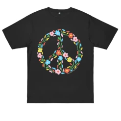 Pop coloured flowers all blooming together to bring a little peace into the worldCut to an Oversized fit, the EP19 is made from heavyweight 100% combed organic cotton and is Fair-Wear, Vegan and GOTS accredited. It’s production is 90% Reduced CO2 achieved by better manufacturing.